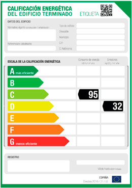 El certificado energético incluirá una calificación de su inmueble en una escala de (A, B, C, D, E, F o G), así como información objetiva de las caracteristicas energéticas, consumos, prestaciones y posibles mejoras en la eficiencia energética del inmueble.